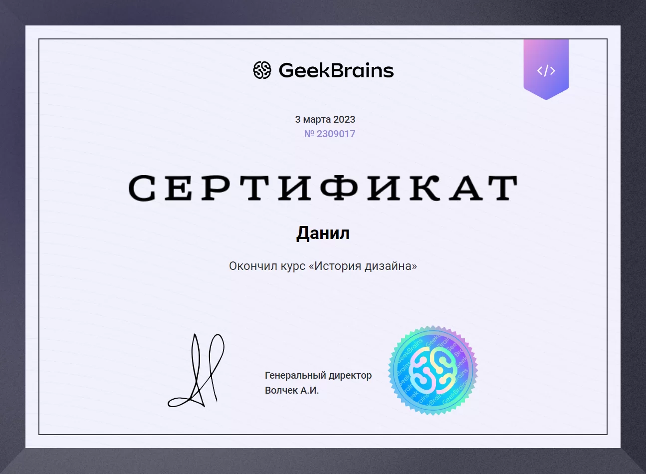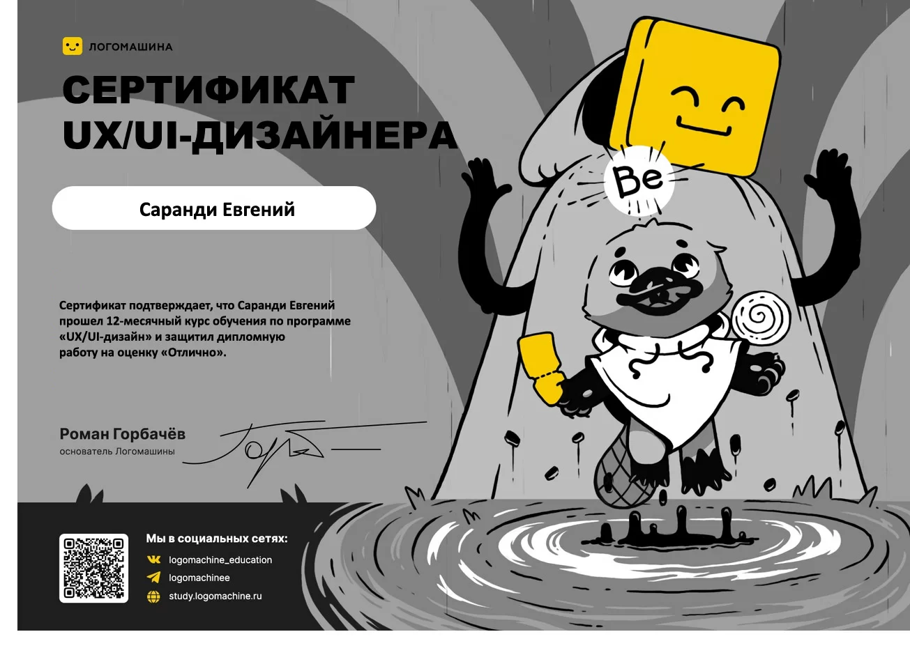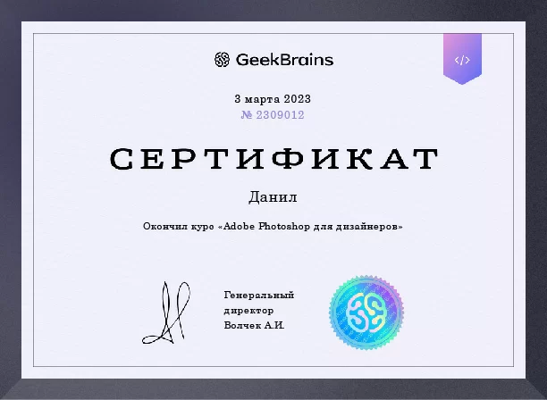 Сертификат Графический дизайнер ЯндексПрактикум
