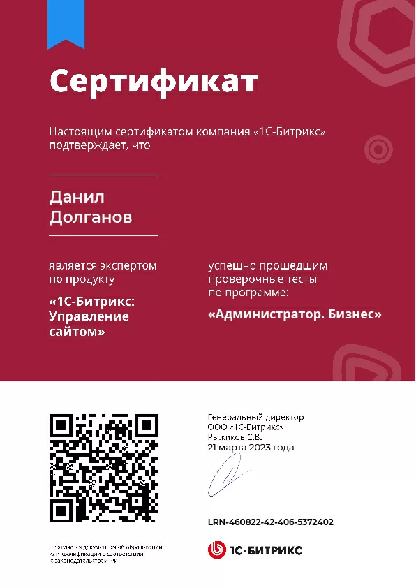 Сертификат Битрикс - Администратор Бизнес 184.1 кб