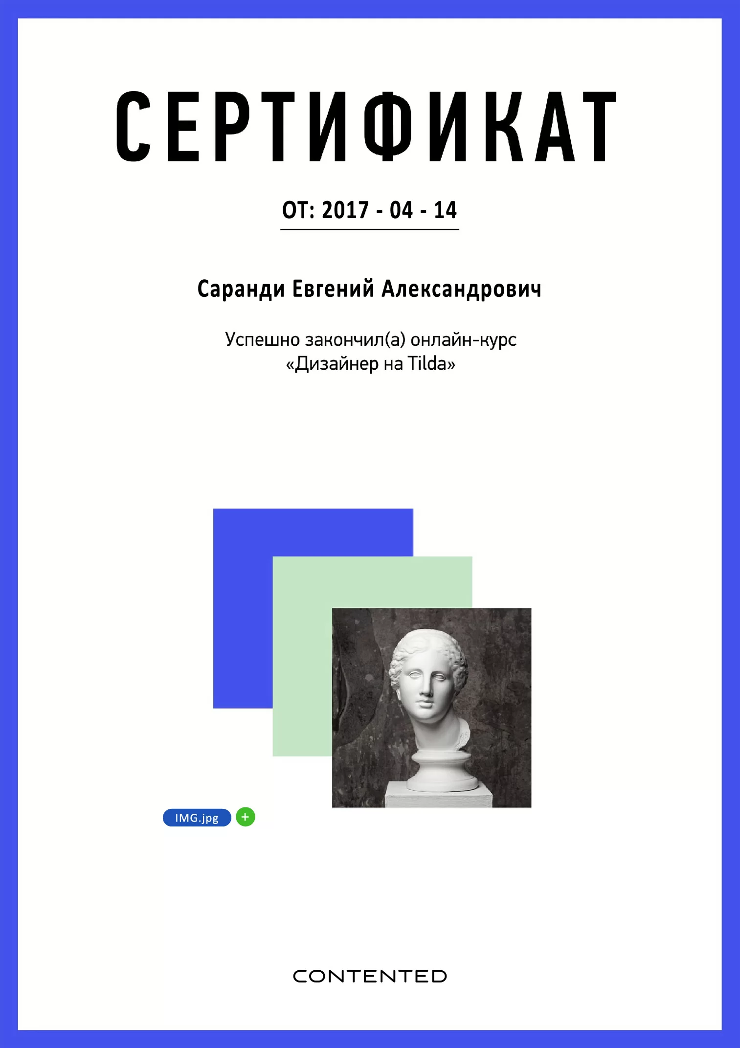 Сертификат Дизайнер на Tilda Contented